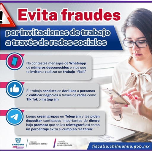 La Fiscalía de Distrito Zona Occidente, alerta a la población para que evite ser víctima de una modalidad de fraude cometido a través de invitaciones vía WhatsApp a “ganar dinero” calificando páginas de internet y redes sociales.