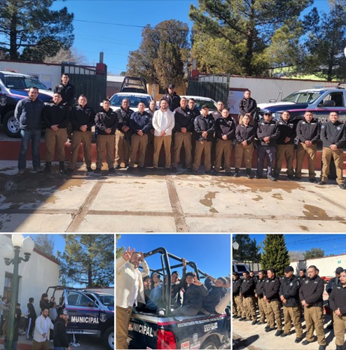 La mañana de este lunes el Presidente Municipal de Casas Grandes, C. Roberto Lucero Galaz, llevo a cabo oficialmente la entrega de dos unidades oficiales a los elementos de Seguridad Pública, dichas unidades fueron gestionadas por el Alcalde ante la Gobernadora del Estado, María Eugenia Campos Galván. También, entregó otras dos unidades al departamento de Vialidad y Transito adquiridas con recurso propio municipal a través del programa FORTAMUN. Así como también efectuó la entrega de uniformes a cada uno de los elementos que conforman estas corporaciones.