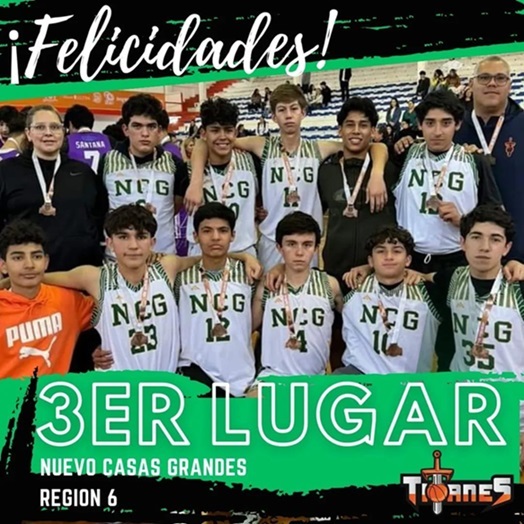 El pasado fin de semana en la ciudad de Delicias Chihuahua, jóvenes de la región asistieron al Estatal ADEMEBA U15, trayéndose así el 3er lugar con 4 juegos ganados y solamente cayendo ante Delicias (subcampeón) en la semifinal.
