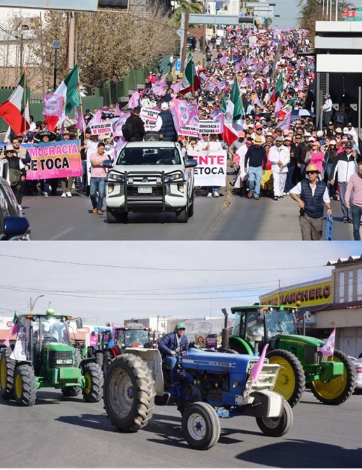 En el municipio de Delicias a la vanguardia de la marcha iban varios tractores, conducidos por agricultores, que llamaron la atención de la gente que se encontraba realizando sus compras en los negocios de la zona comercial. Algunos de los tractores portaban lonas, con leyendas que hacían eco de la defensa del agua de Chihuahua y de la importancia de la agricultura para la producción de alimentos.