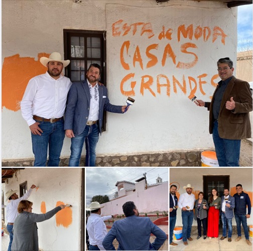El día de hoy el Presidente Municipal, acompañado del Lic. Edibray Gómez, celebraron en inicio de un magnifico proyecto para Casas Grandes, “LA RUTA DE COLOR”, proyecto qaue consta de 10 mil trescientos metros cuadrados de pintura en fachadas del municipio cercanas a el centro histórico y lugares emblemáticos de Casas Grandes.