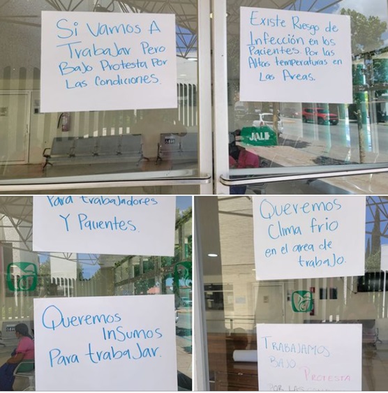 Resaltan que si trabajarán bajo protesta por las condiciones, aclaran que existe riesgo de infección en los pacientes por las altas temperaturas, resaltan la falta de insumos en el hospital