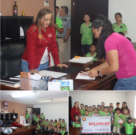 Con el compromiso de la Presidente Municipal, Lic. Edith Escárcega Escontrías, continúa el impulso y apoyo total al deporte, por lo que el día de hoy los integrantes de la liga de futbol infantil Bravos de Nuevo Casas Grandes recibieron un apoyo económico.