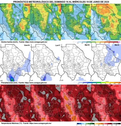 Se esperan rachas de viento de hasta 55 kilómetros por hora(km/h) en Ascensión, Janos, Nuevo Casas Grandes, Galeana, Ignacio Zaragoza, Buenaventura, Gómez Farías, Namiquipa, Bachíniva, Guerrero, Balleza, Nonoava, Cusihuiriachi, Cuauhtémoc, Julimes, Saucillo, Jiménez, Camargo, La Cruz, Coyame y Ojinaga.