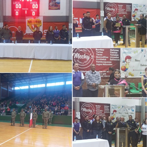 Luciendo sus coloridos uniformes, todos los equipos desfilaron por la duela del gimnasio, ante el presídium conformado por autoridades Municipales, donde se realizaron los honores a la bandera a cargo de la escolta del Batallón de Infantería.