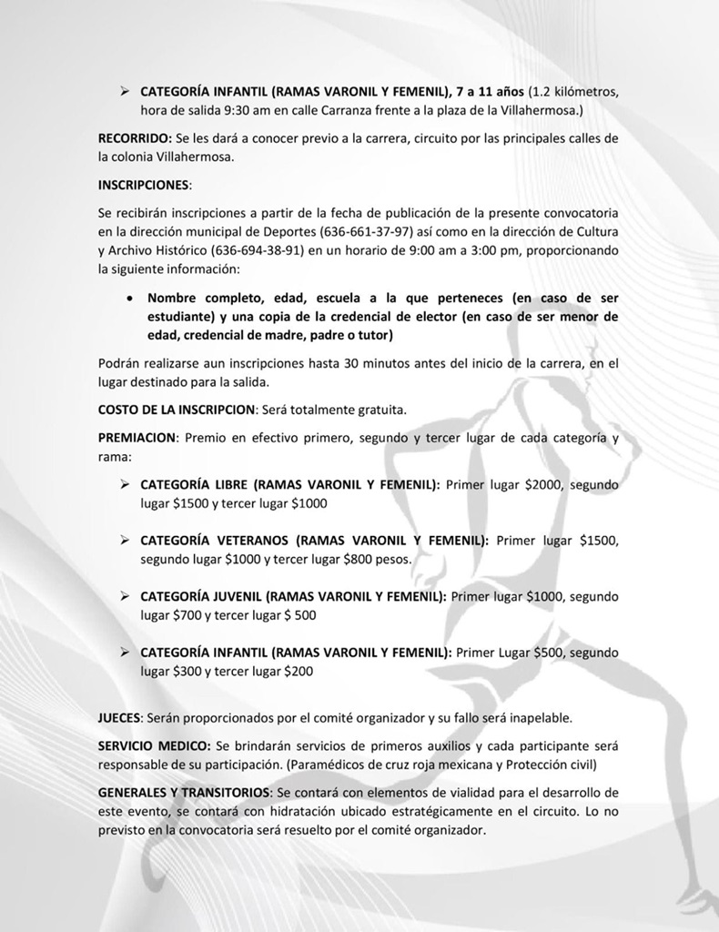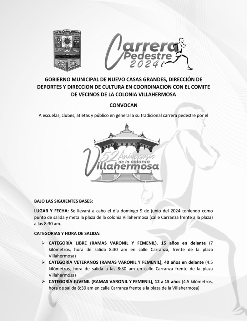 Gobierno Municipal de Nuevo Casas Grandes en coordinacion con el Comité de Vecinos de la Colonia Villahermosa a carrera pedestre por 52 Aniversario de la Col. Villahermosa