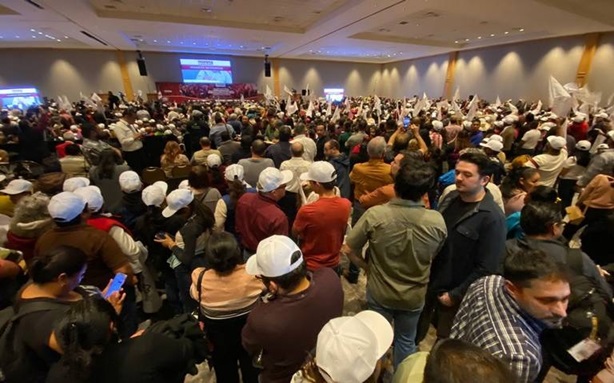 Dentro del salón se estiman más de 2 mil 500, otras mil en el vestíbulo y el resto todavía en camiones y llegando.