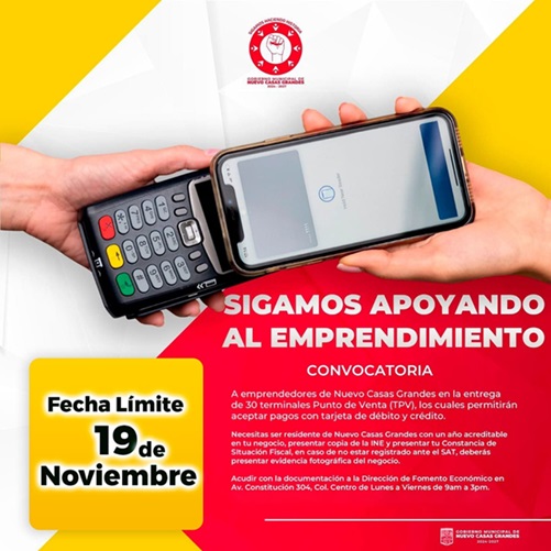Este programa tiene como objetivo impulsar a los emprendedores locales mediante la entrega de 30 terminales Punto de Venta (TPV), que permitirán aceptar pagos con tarjetas de débito y crédito, facilitando las transacciones y fortaleciendo la competitividad de los negocios en Nuevo Casas Grandes.