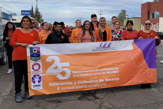 La tarde de este lunes a las cuatro de la tarde se llevo a cabo una marcha a la cual acudió la presidente municipal de Nuevo Casas Grandes Edith Escárcega, la acompañaron varios funcionarios de la administración, también participo la Fiscalía del Mujer y del Noroeste, Derechos Humanos de este ciudad, así como demás instituciones y familiares de mujeres que han sufrido violencia e incluso han perdido la vida a causa de la violencia.