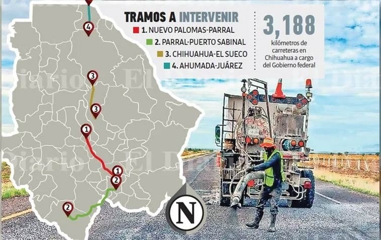 De acuerdo con el mapa de los tramos a intervenir en el programa “Bachetón”, ubican en el estado Nuevo Palomas-Parral, Parral-puerto Sabinal, Chihuahua-el Sueco y Ahumada-Juárez, por lo que son 11 tramos que continuarán sin mantenimiento.