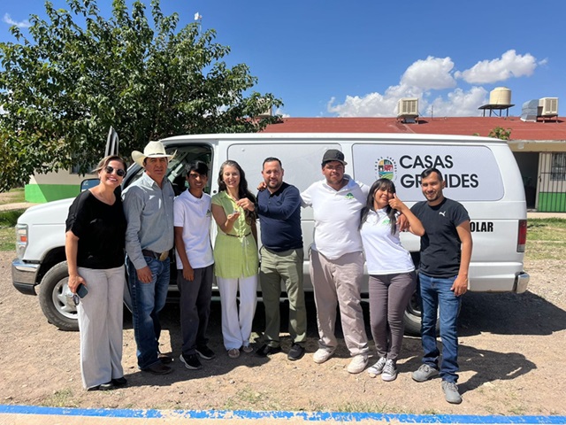 Este martes el Presidente Municipal de Casas Grandes, C. Roberto Lucero Galaz, a través de la dirección de Educación, realizó la entrega de una camioneta para transporte de los alumnos del telebachillerato de sección Enriquez, quienes realizaron esta petición a través de la maestra Carolina Marín.