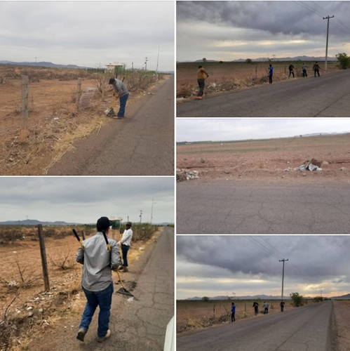 La mañana del lunes personal del Departamento de Servicios Públicos, que dirige el Ing. Armando Cázares García, estuvieron realizando labores de limpieza en el camino que va a la Laguna Fierro por la calle 2 de Abril.