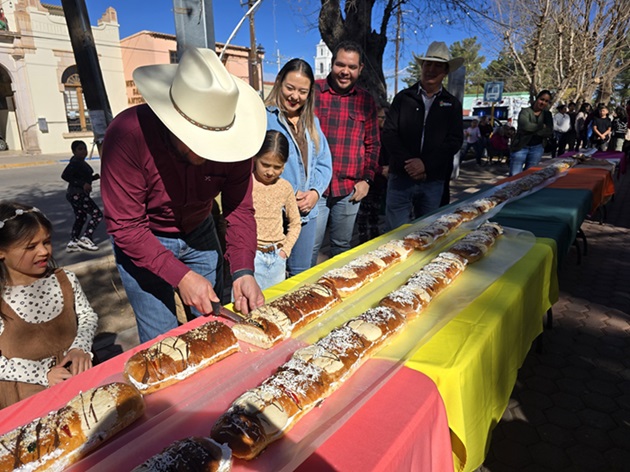 En convivencia familiar el alcalde de Casas Grandes Roberto Lucero y su Esposa Carolina Meza presidenta del DIF Municipal partieron la tradicional Rosca de Reyes.