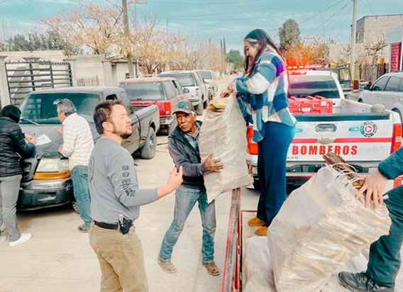 Debido a que se registrará un descenso en la temperatura, la presidenta municipal, Odileth Piñón en compañía de elementos de bomberos, continúan en la entrega de costales de leña a las familias que requieren el apoyo para mitigar el frío.