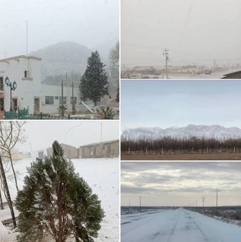 El pronóstico para miércoles 8 y jueves 9 de enero indica nevadas en la tarde-noche en Janos, Casas Grandes, Madera, Ignacio Zaragoza, Gómez Farías, Namiquipa, Temósachic, Matachí, Ocampo, Guerrero, Maguarichi, Bocoyna, Guachochi, Guadalupe y Calvo, Balleza, Nonoava, Juárez, Ahumada, Chihuahua, Saucillo, Parral, Delicias, Julimes, Coyame y Manuel Benavides.
