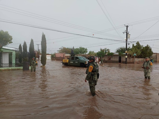 Como parte de las acciones para proteger a la población ante la intensa lluvia registrada la tarde de este miércoles 2 Jul. 2025, personal del Ejército Mexicano, perteneciente al 35/o Batallón de Infantería, activó el Plan DN-III-E en su fase de prevención implementando labores de vigilancia y de monitoreo en diversas zonas consideradas de riesgo en el municipio de Nuevo Casas Grandes, Chih.