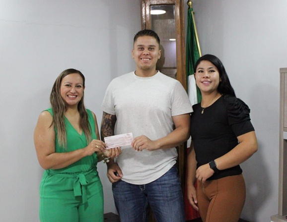 Durante la entrega del apoyo, la Presidenta Municipal expresó su reconocimiento al joven deportista, resaltando la importancia de impulsar el talento local y motivar a la juventud a seguir luchando por sus sueños.