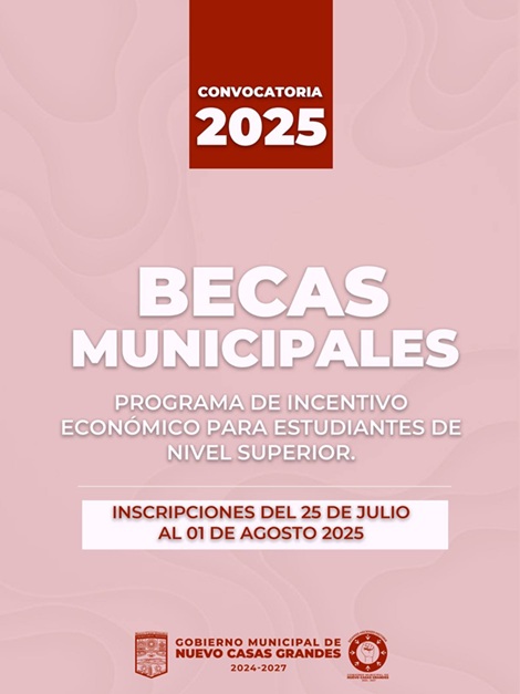 El Gobierno Municipal de Nuevo Casas Grandes, a través de la Dirección de Educación, pone a disposición de los estudiantes del municipio un apoyo económico, bajo las siguientes modalidades, para el periodo escolar de agosto a diciembre de 2025: