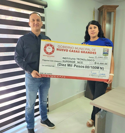 En días pasados se hizo la entrega de un apoyo económico al Instituto Tecnológico Superior de Nuevo Casas Grandes (ITSNCG), que fue sede de los Intertecs 2025; evento donde se desarrollaron los encuentros deportivos.