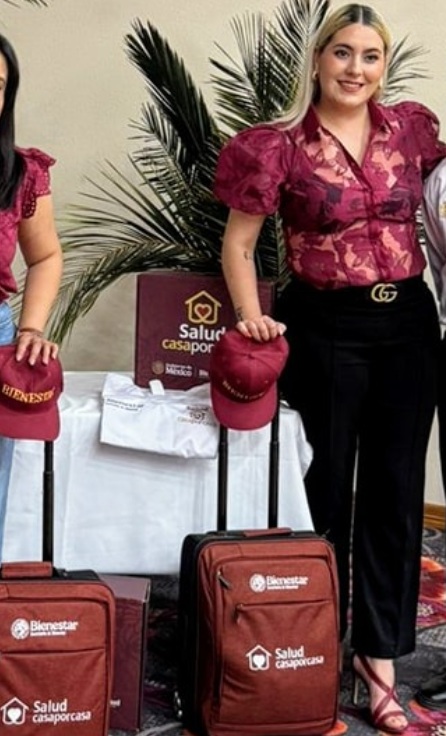 La delegada América García esta iniciando en el noroeste un programa "Salud Casa x Casa" entregando un maletín del bienestar que contiene herramientas para evaluar la salud y el bienestar integral, incluyendo báscula, estetoscopio, baumanómetro, termómetro, equipo para medir glucosa, triglicéridos y colesterol, oxímetro, además de elementos de protección como guantes, cubrebocas y abatelenguas.