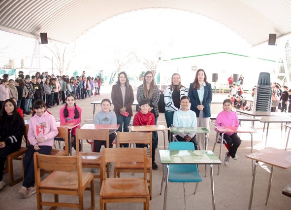 La mañana del lunes, el Gobierno Municipal de Nuevo Casas Grandes realizó la sexta entrega de mobiliario escolar a dos importantes escuelas del municipio. La ceremonia fue encabezada por la Presidenta Municipal, Edith Escárcega, quien estuvo acompañada por la Sindico Municipal; la Lic. Sahira Bejarano, el Secretario Municipal; Lic. Mauricio Prieto y la Directora de Educación; Lic. Alejandra Chinolla.