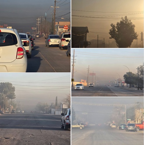 La mañana de este miércoles Nuevo Casas Grandes y sus alrededores amanecio con una enorme cantidad de humo debió a la quema de llantas principalmente por fruticultores para proteger la fruta de las bajas temperaturas.