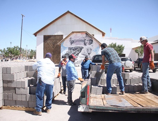 Entre el material que fue entregado destacan 900 polines, 9,500 blocks, 1,100 sacos de cemento y 700 láminas.