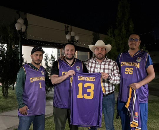 El Presidente Municipal de Casas Grandes, C. Roberto Lucero Galaz, realizó la entrega de apoyo con uniformes, traslado e inscripciones al equipo de basquetbol que estará representando a Casas Grandes en el torneo Nacional de Maxibaloncesto categoría 29 y más.