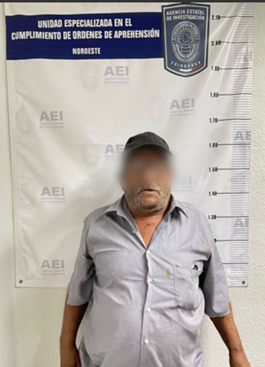 La citada persona de 72 años de edad, fue detenida con una orden de aprehensión en la colonia Villa Hermosa, en el municipio de Nuevo Casas Grandes.