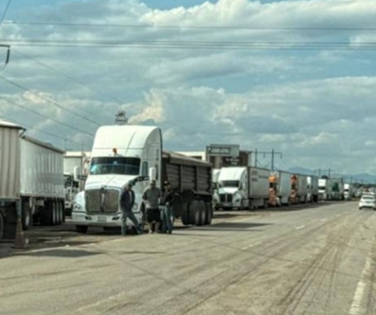 EN PROTESTA POR SUPUESTA EXTORCIÓN DE ELEMENTOS DE LA GN, TRANSPORTISTAS BLOQUEARON CARRETERA A JUÁREZ Y NCG |