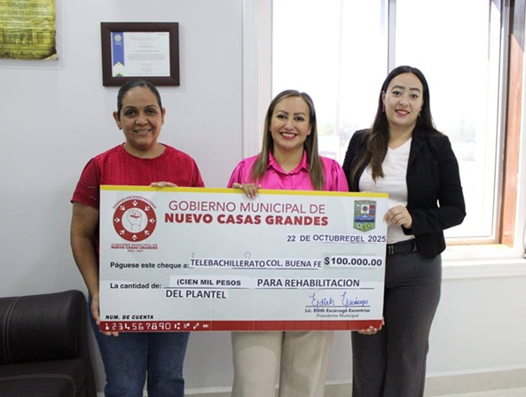 Cumpliendo su compromiso con la educación y en seguimiento a las acciones para la rehabilitación de espacios afectados por el reciente desastre el pasado 13 de octubre, la Presidenta Municipal, Lic. Edith Escárcega, realizó la entrega de un apoyo económico al TeleBachillerato #8036 de la Colonia Buena Fe, con el propósito de que esta institución pueda retomar sus actividades académicas lo más pronto posible.