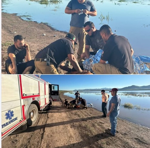 Bomberos de Nuevo Casas Grandes acudieron el domingo a las 6 de la mañana a La Layga Fierro, debido a que recibieron reporte del 911 que un masculino se encontraba al interior de la Laguna Fierro en estado de ebriedad.