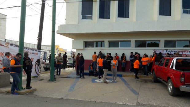 Los docentes de la Sección 42 del Sindicato Nacional de Trabajadores de la Educación (SNTE) que fueron a paro laboral indefinido para exigir el pago de sueldos y prestaciones.