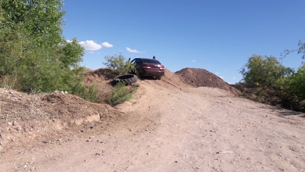 Hasta ayer por la mañana los bordos de tierra permanecían en la entrada, sin embargo las pickup ya podían pasar debido a que retiraron un poco de tierra automóvil chicos todavía no tenían acceso, la entrada sur también ya se puede circular fueron retirados los alambres de la cerca.