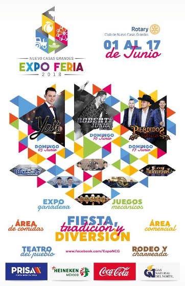 Club Rotario de Nuevo Casas Grandes invita a las familias de la región acudir a la Feria Expo 2018 “Fiesta, tradición y diversión”, tienen preparados grandes eventos para todo tipo de diversión, también contaran con una Charreada Nacional.