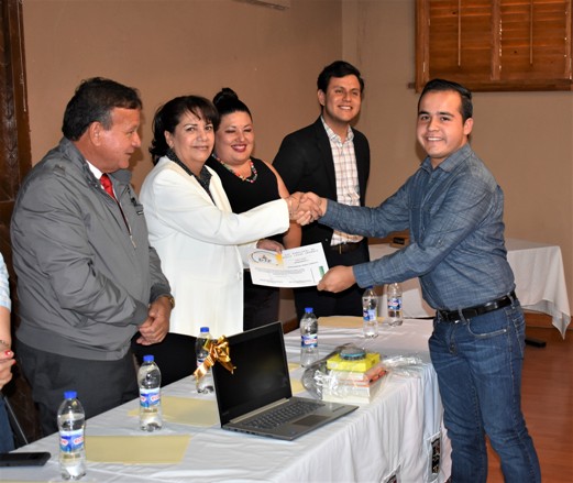 Posteriormente se dio paso a la entrega de diplomas y obsequios para los jóvenes participantes: Ana Molina Fernández ganadora del 4to lugar, Marco Antonio Enríquez Acosta ganador del 3er lugar, Uriel Galaz Chinolla ganador del 2do lugar y con el primer lugar Jesús Manuel Parra Carbajal, quien además de los obsequios y su diploma, fue merecedor de una laptop.