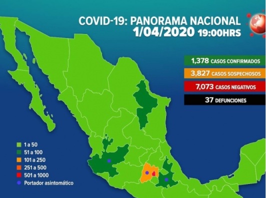 México inicia abril con 1378 casos positivos de Covid-19 |