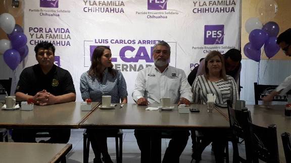 Estuvo en Nuevo Casas Grandes Luis Carlos Arrieta “El Capi” candidato a la gubernatura de Chihuahua por el Partido Encuentro Solidario (PES) donde durante rueda de prensa hablo sobre su propuestas de campaña.