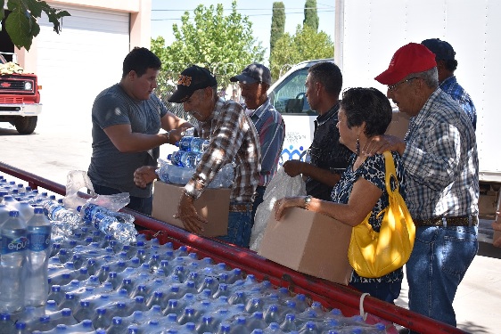 Un total de 750 despensas y 3 mil litros agua serán entregados a las familias más vulnerables del municipio, las cuales se otorgaron a partir de las 11 de la mañana en la estación de Bomberos por parte de personal de la corporación, destinados a mitigar los siniestros de la onda de calor que afectó la localidad en días pasados.