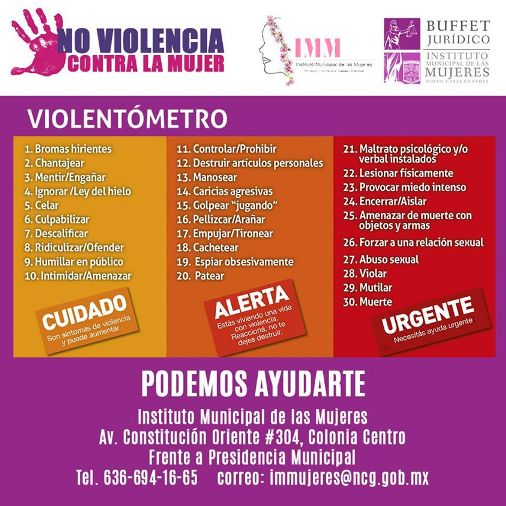 *El Instituto Municipal de las Mujeres NCG brindará asesoría inmediata al número 636 694 16 65