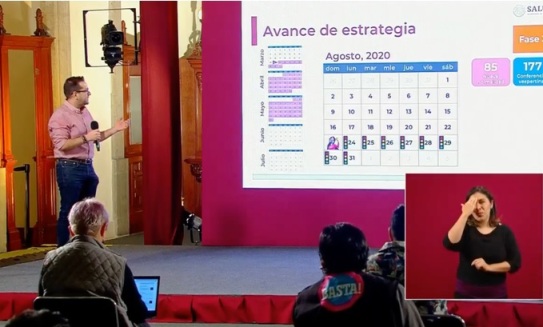 En el día 85 de la nueva normalidad, se presentó el reporte diario sobre el comportamiento de la pandemia de Covid-19 hasta la semana epidemiológica 33 (del 9 al 15 de agosto), así como las confirmaciones de casos y defunciones de las últimas 24 horas. De estos últimos, Ricardo Cortés, director de Promoción de la Salud, informó que se sumaron 3 mil 947 casos para un acumulado de 560 mil 164.