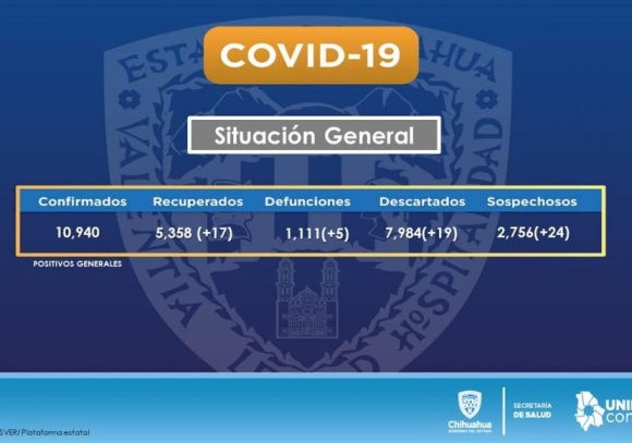 La Secretaría de Salud informó en el Reporte COVID-19 Conferencia Informativa #192 Virtual #150, que a la fecha se registran 10 mil 940 casos confirmados con 126 nuevos, así como mil 111 fallecimientos con 5 más, todos en Ciudad Juárez.