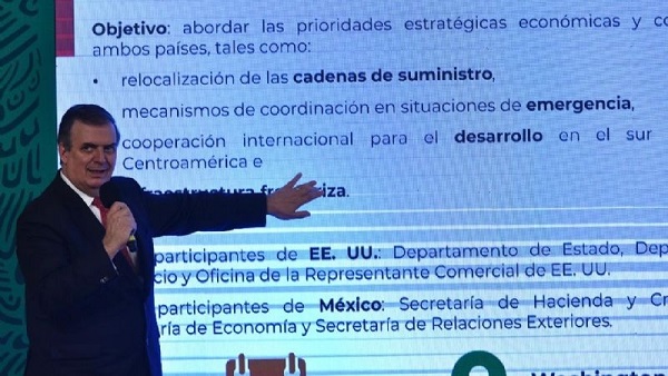 El canciller Marcelo Ebrard Casaubón dijo que entre los temas del diálogo económico de "alto nivel", interesa el proyecto de infraestructura que la administración de Joe Biden pretende realizar en la zona fronteriza entre ambas naciones.