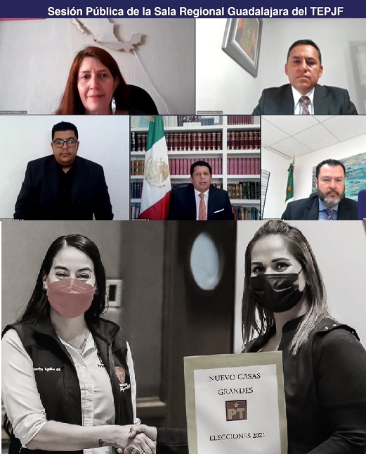 Magistrados de la Sala Regional de Guadalajara durante la sesión llevada a cabo este jueves ratificaron a Cinthya Ceballos como presidente municipal electa de Nuevo Casas Grandes.