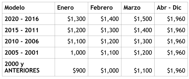 Detalló la Secretaría que en términos reales, el costo de la revalidación disminuyó 15.2% desde el 2016, ante esto, el precio de la Revalidación Vehicular, ya con Impuesto Universitario, tarjeta de circulación y Cruz Roja quedará de la siguiente manera: