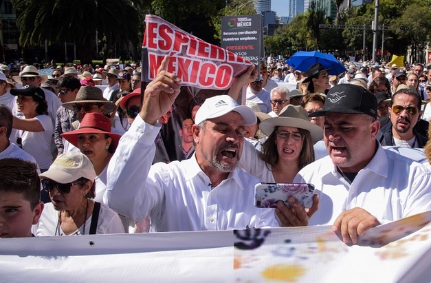 Parte de la familia LeBarón marchó este domingo junto a otros ciudadanos desde el Ángel de la Independencia hacia el Monumento a la Revolución para exigir al presidente Andrés Manuel López Obrador -que cumple este 1 de diciembre un año de gobierno- seguridad y justicia.