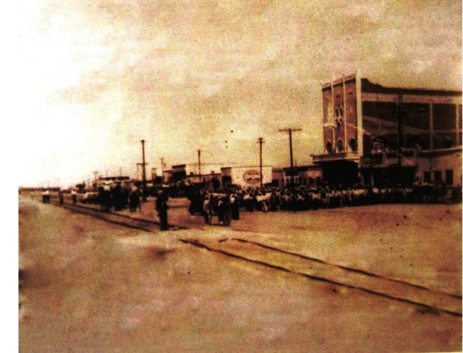 *El avión aterrizó en la Av. Constitución poniente deteniéndose frente a las oficinas del aserradero propiedad de Don Julián Aguilar (Hoy casa Eléctrica propiedad del Sr. Gustavo Albistegui).