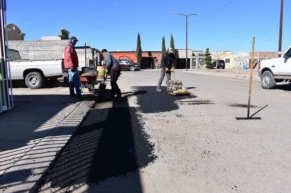 Presidencia Municipal de Nuevo Casas Grandes, a través de obras públicas continua con programa permanente de bacheo, este miércoles cuadrilla de trabajadores acudieron a la calle Chapuluapan en el Fraccionamiento Regidores al sur de la ciudad.