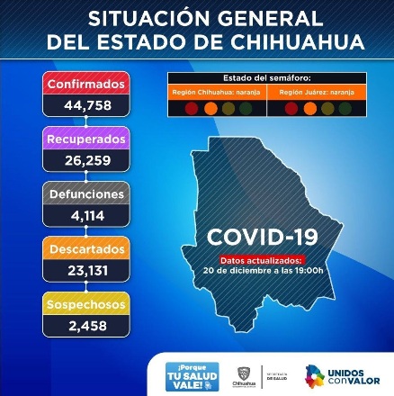 La pandemia en Chihuahua arroja un saldo de 44 mil 758 infectados y 4 mil 114 personas que han perdido la vida a causa del Covid-19. Se han logrado recuperar 26 mil 259.