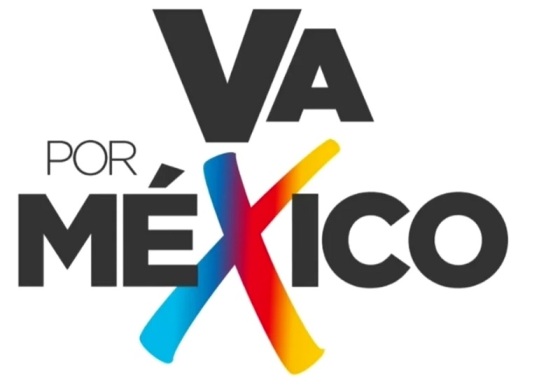 Esta alianza lleva el nombre de “Va Por México”; las letras son de color negro y en la X resaltan los colores azul del PAN; rojo del PRI y amarillo del PRD.